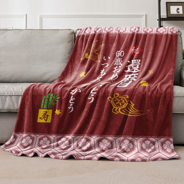 還暦祝い 男性 女性 誕生日 プレゼント 60歳 お祝い 毛布 ブランケット 還暦グッズ 赤いものプレゼント おばあちゃん おじいちゃん 父の日 母の日ギフト 友達 同僚 上司 飾り 装飾 贈り物 127x152cm