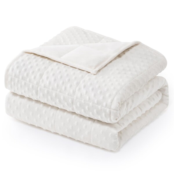 Wemore ミンキードット 加重ブランケット 大人用 クイーンサイズ 12ポンド ベッドとカウチ用 ソフトで心地よいヘビーブランケット オールシーズン用 ガラスビーズ付き ホワイト 60×80インチ