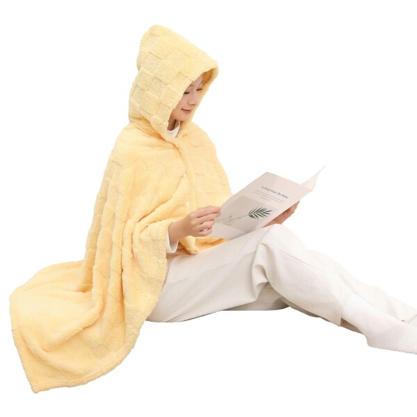 ZVCXOE ひざ掛け 4way ブランケット 毛布 大判 着る毛布 ボタン付き あったか 厚手 吸湿発熱 防寒対策 静電気防止 フランネル 洗える ハーフケット 肩掛け 膝掛け 腰巻きスカート 軽量 通年使用 85*140CM イエロー