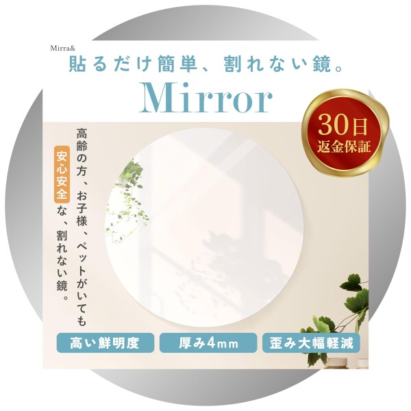 | 商品名 | 貼るだけ簡単 割れない鏡 貼る鏡 円形 壁掛け鏡 姿見鏡 ミラー 鮮明な映りで部屋明るく お子様やペットも安心安全 (円形40cm, 1, 個) |