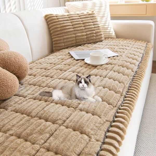 YKFN ソファーパッド ソファカバー ソファーカバー 2人掛け 3人掛け 肘付き かけるだけ 秋冬用 暖かい ソファーシート マルチカバー ソファー ソファーマット 長座布団 犬猫対策 肘なし ふんわり ずれない ベッドカバー 替えソファカバー 汚れ防止 厚手 寒さ対策 洗える ブラウン 70*150CM