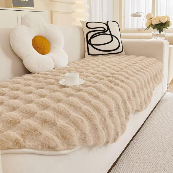 ?【商品詳細】?素材: ラビットファー生地 シンプルなデザイン、無地、柔らかく、快?、蛍光染料は使用しておりません、優れた通気性柔らかい肌触りになります。装着がしやすく、肘付き、肘なしソファカバーでご利用いただけます。