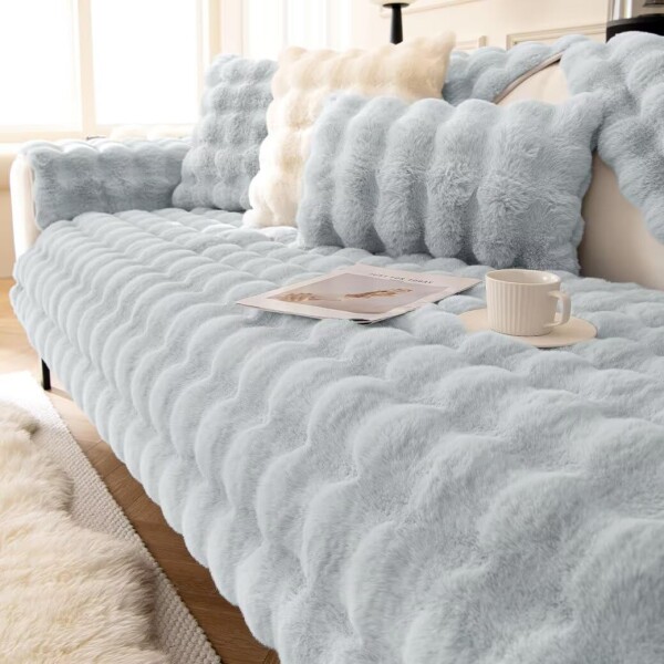 Eamochi ソファーカバー 秋冬用 厚地 ふわふわ 滑り止め 肌触りが気持ちいい 天然素材 上質素材肌触りあったかい かけるだけ 無地 北欧風 1人2人3人4人掛け 寒さ対策 防寒保温 犬 猫 傷 防止 ソファマット 柔らかい 洗える(3人掛け 90-180cm,グレイッシュブルー)