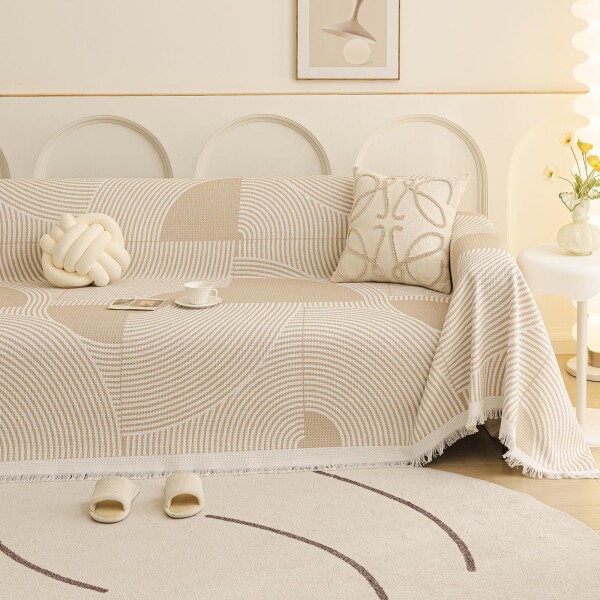 JEMAジェマ ソファーカバー 北欧風 マルチカバー テーブルクロス ソファカバー ベッドカバー 長方形 ブランケット 綿混 リバーシブル 毛布 無地 保護カバー 防塵 キズ防止 汚れ防止 洗える 四季通用 おうぎ形・ワッフル柄 90×180cm(1人掛け)