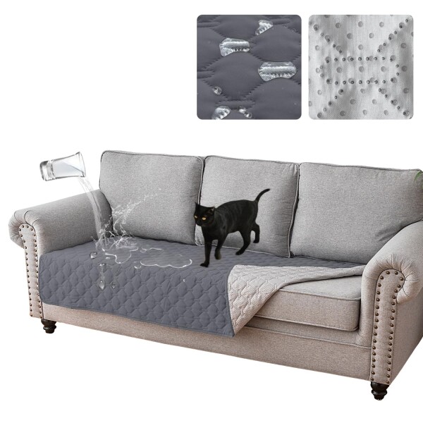 ソファカバー ソファパッド ソファーシーツ ペット 防水 マルチカバー 滑り止め加工 犬猫対策 洗える 傷防止 爪とぎ防止 抗菌防臭 吸汗速乾 取り付け簡単 柔らかい 尿失禁 ベビー 高齢者 介護用 大判 汚れ防止(グレー 滑り止め 107*132cm)