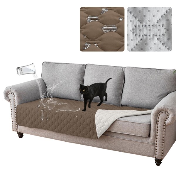 ソファカバー ソファパッド ソファーシーツ ペット 防水 マルチカバー 滑り止め加工 犬猫対策 洗える 傷防止 爪とぎ防止 抗菌防臭 吸汗速乾 取り付け簡単 柔らかい 尿失禁 ベビー 高齢者 介護用 大判 汚れ防止(ブラウン 107*132CM)