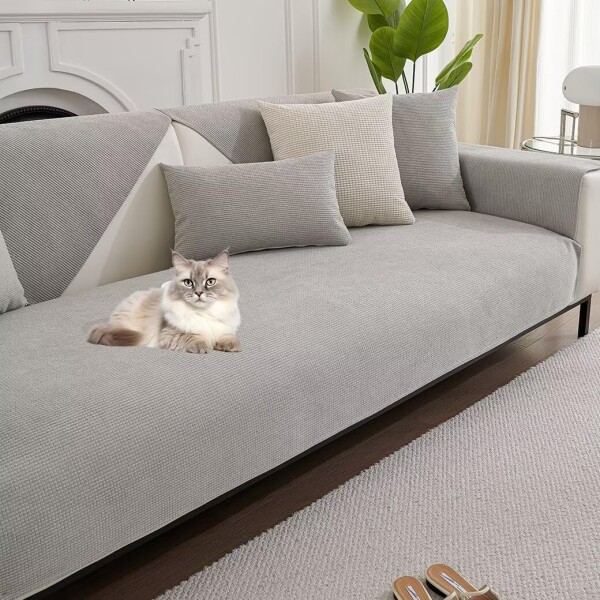 Eamochi ソファーカバー 防水 撥水加工 滑り止め かけるだけ ズレにくい 無地 防水ソファマット 肘付き 肘なし シンプル 四季通用 北欧 おしゃれ ソファーパッド 多機能 厚手 保護カバー 3人4人5人掛け 汚れ防止 犬猫対策 防塵 ペット対策 洗える(90-160cm ライトグレー)