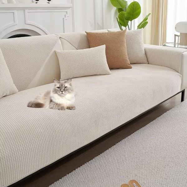 Eamochi ソファーカバー 防水 撥水加工 滑り止め かけるだけ ズレにくい 無地 防水ソファマット 肘付き 肘なし シンプル 四季通用 北欧 おしゃれ ソファーパッド 多機能 厚手 保護カバー 3人4人5人掛け 汚れ防止 犬猫対策 防塵 ペット対策 洗える(70-180cm ベージュ)