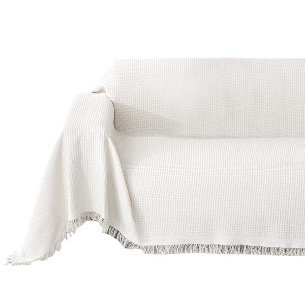ソファーカバー 北欧風 マルチカバー ソファー 多機能 ソファ カバー フリンジ付き 長方形 ソファー 保護カバー 防塵 キズ防止 汚れ防止 四季通用 (ワッフル格-ホワイト, 130×180cm (1~2人掛け))