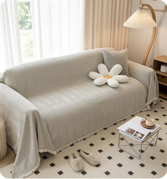 ソファーカバー マルチカバー 北欧風 ソファー カバー ブランケット 大判 長方形 3人掛け 肘付き 多機能 防塵 爪とぎ防止 汚れ防止 滑り止め おしゃれ 四季通用 洗える (ベッジュ, 180*130cm)