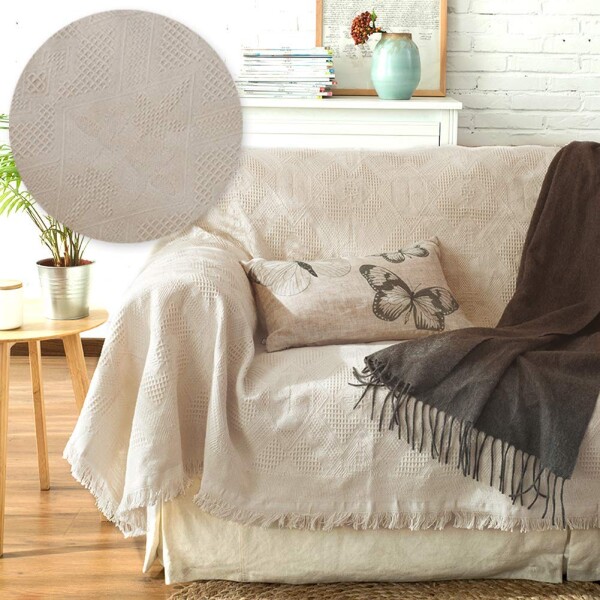 無地の色やフリンジのデザイン、シンプルで部屋の雰囲気に馴染みやすい。ソファーに掛けると、部屋に明るく、暖かい感じをあげる。実用性も美観性も備えている。