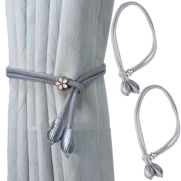 Tibemi 花モチーフ 北欧風 カーテンタッセル おしゃれ 2個セット 房掛け マグネット不要 取り付け簡単 長さ調節可能 ナチュラルインテリア シンプル ホルダー モダン デザイン-グレー