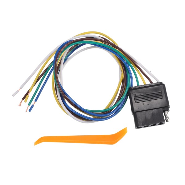 ユニバーサルフィット:5ピンフラットトレーラーコネクターのワイヤは28インチの長さで、トレーラーワイヤリングに差し込んで車両ソケットへの接続を提供します。2線式電気システムに最適です。