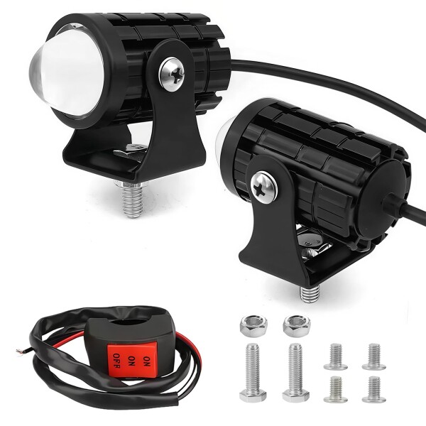 【同梱内容】LED補助灯2個、操作スイッチ1個、角度調整用ブラケット2個のセット。設置も簡単で届いたらすぐに使用可能。