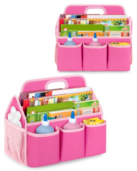 LoDrid キッズ 絵本ラック ミニ 子ども用 本棚 収納ケース 持ち手付き 軽量 複数のポケット 絵本収納ラック (ピンク)
