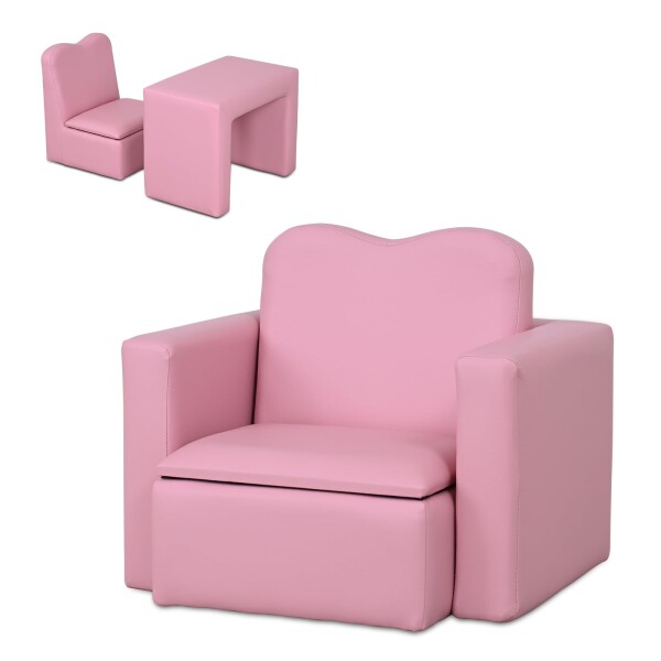 IKIFLY キッズ ソファ 子供用ソファーテーブル セット選べるカラー 肘掛けがテーブルになるソファ 組立不要 多機能 一人掛け 子ども用 チェア キッズルーム 子供部屋 リビング (ピンク)