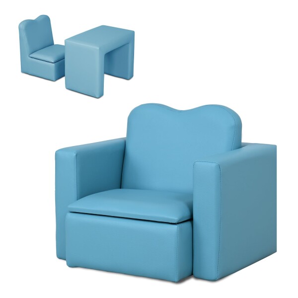 IKIFLY キッズ ソファ 子供用ソファーテーブル セット選べるカラー 肘掛けがテーブルになるソファ 組立不要 多機能 一人掛け 子ども用 チェア キッズルーム 子供部屋 リビング (ブルー)