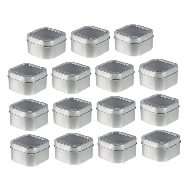 Operitacx 15個 ブリキ ボックス ブリキ コンテナ 蓋付き 正方形 金属 缶 4 オンス 缶 DIY キャンドル コンテナ ブリキ 缶 金属 缶 窓付き 蓋 缶 用キャンドル 作る メタル