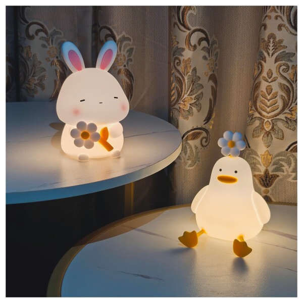 TJT ナイトライト 授乳ライト かわいいベッドサイドランプ 花アヒルデザインのシリコン授乳らいと 3段調光USB充電 30分タイマー機能 誕生日プレゼント/ギフト(?とラビットのセット)