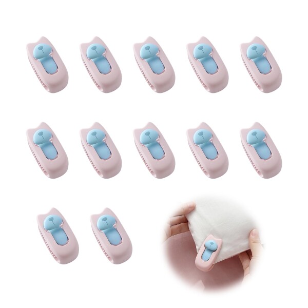 EsiFare 布団クリップ 布団ずれ防止クリップ 12個セット 取り付けが簡単です 軽量でコンパクト クリップ 針なし 再利用可能 傷めません 敷きパッド 毛布 ベッド シーツ ブランケット 固定用 対応 すべての季節 (ライトピンク)