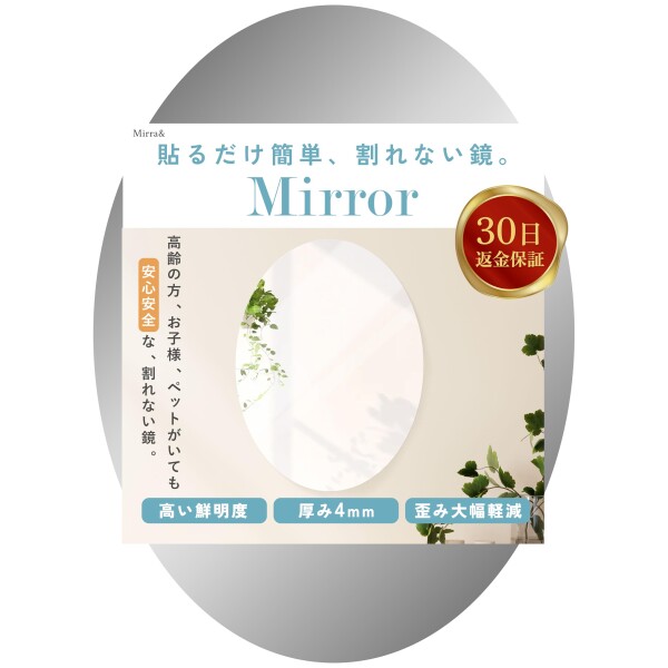 | 商品名 | 貼るだけ簡単 割れない鏡 貼る鏡 円形 壁掛け鏡 姿見鏡 ミラー 鮮明な映りで部屋明るく お子様やペットも安心安全 (楕円形40×25cm, 1, 個) |