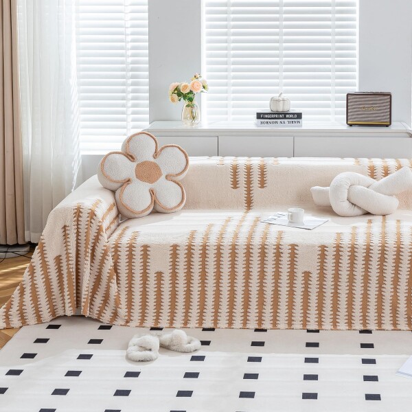 JEMAジェマ ソファーカバー マルチカバー ベッドカバー 長方形 ブランケット 北欧風 冬用 暖かい 1人掛け 2人掛け ふわもこソファーカバー フェイクファー なめらか ふんわり 肌ざわり 汚れ防止 キズ防止 犬猫対策 気分転換 防塵 洗濯可 洗える あったか素材 お手入れ楽々 130×180cm(1-2人掛け) ストライプ ベージュ