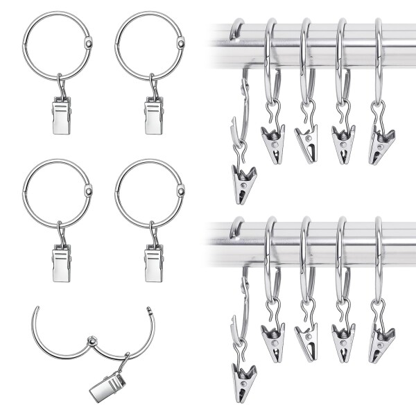 【高品質スチール製カーテンフック】クリップは丈夫なスチール製で、長持ちするようにメッキ仕上げされ、高湿度な浴室にしても、錆にくくて長期的に光沢を保って使用できます。また、重みのあるカーテンもしっかりホールドし、重い素材も安心