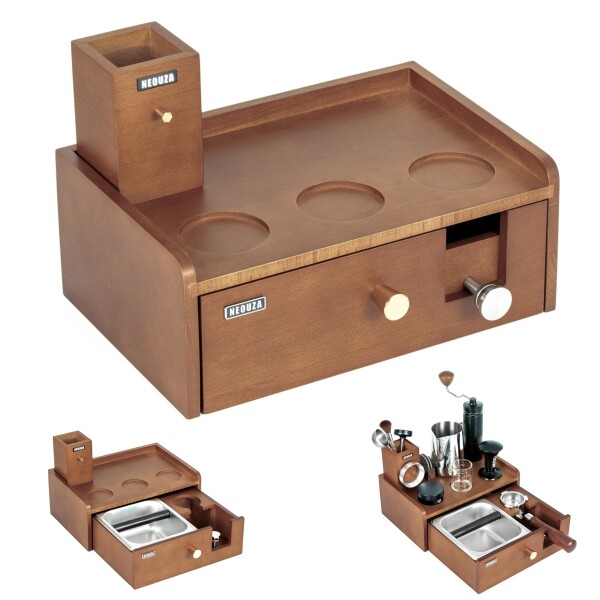 NEOUZA 多機能バリスタステーション | 内蔵ノックボックス&タンパースタンド、取り外し可能な引