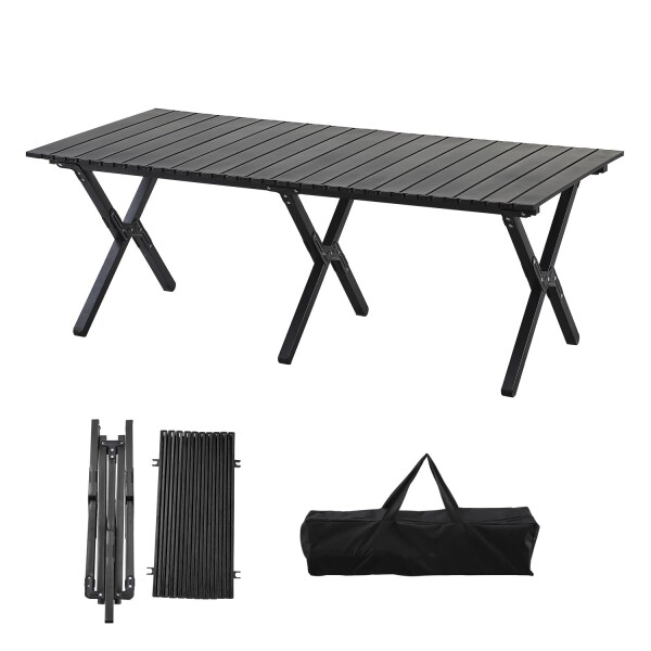 TAO ONE アウトドアテーブル 120x60x44cm キャンプテーブル アルミ ロールテーブル 折りたたみテーブル 持ち運び テーブル 軽量 コンパクト 屋外 食卓 BBQ イベント用 ブラック