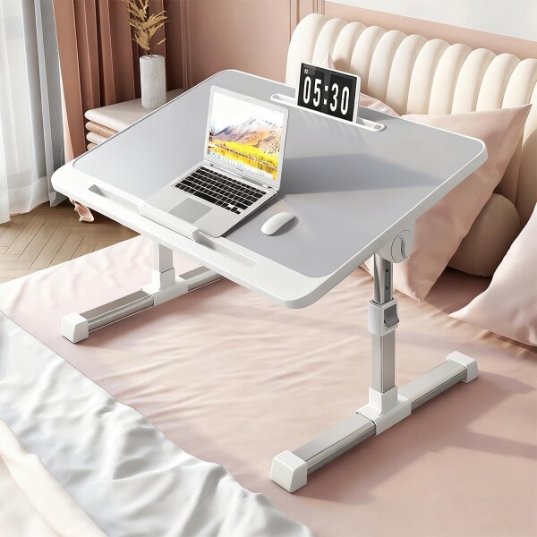 yxcen-homeベッドテーブル 折りたたみ テーブル 高さ調整 昇降デスク 角度調節 多機能 軽量 凹溝付き 組立不要 ノートパソコンデスク pcデスク 在宅勤務 食事 勉強 ミニテーブル グレー/引き出しなし