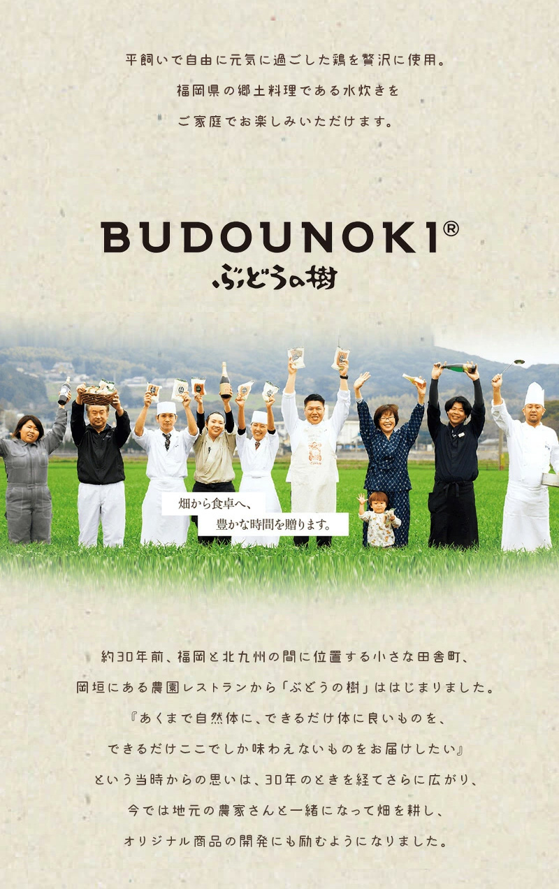 商品の特徴 平飼いで自由に元気に過ごした鶏を贅沢に使用。福岡県の郷土料理である水炊きをご家庭でお楽しみいただけます。