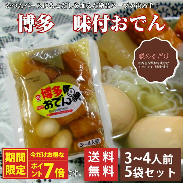 【ポイント7倍】博多おでん 調理済み 3〜4人前 6種1300g×5袋セット/ 送料無料 あごだし 卵 大根 こんにゃく (北海道・沖縄別途送料)