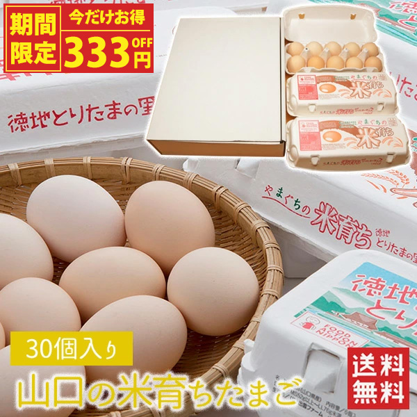 【お買い得SALE限定!333円OFF】【送料無料】山口の米育ちたまご 30個 30玉 たまご 卵 生卵 新鮮卵 出雲ファーム (北海道・沖縄発送不可) (日本郵便にて発送)