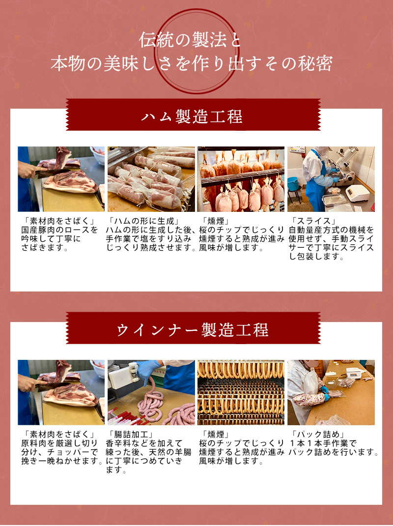 内容量:ロースハム250g/焼豚250g/チキンウインナー160g/ハーブウインナー160g