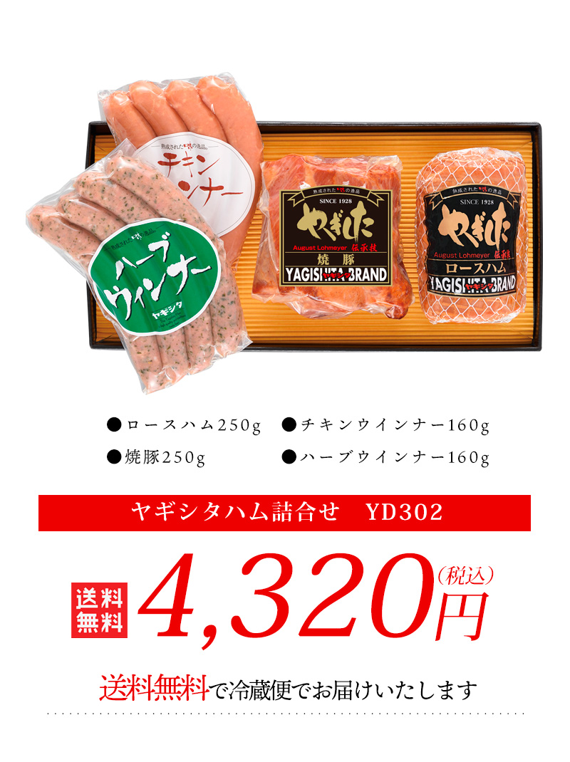 【送料無料】ヤギシタハム 詰合せ YD302 / ロースハム 焼豚 ウインナー 北九州 (北海道・沖縄別途送料)