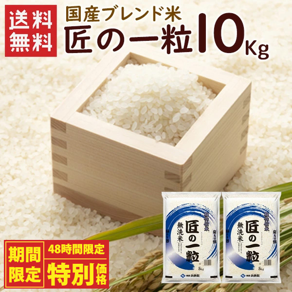 【週末限定特別価格】無洗米 国産匠の一粒 10kg (5kg×2袋) 送料無料 複数年度産(北海道別途送料/沖縄・離島対応不可)(配達日・時間指定は不可)