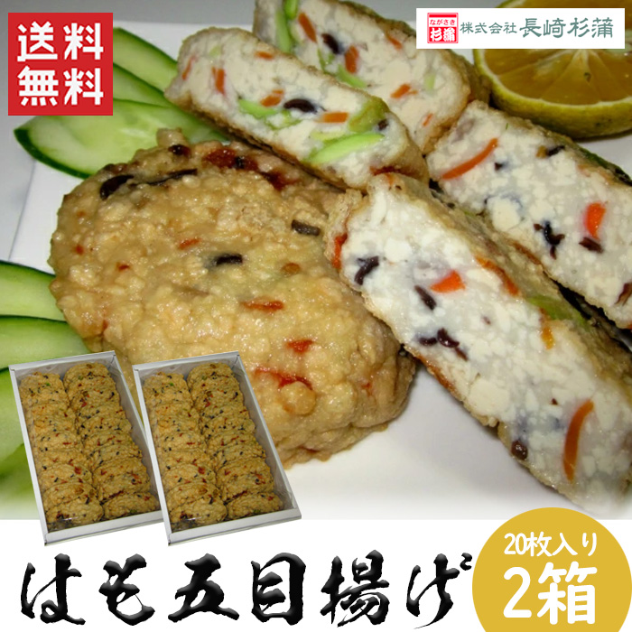 はも五目揚げ2箱セット(合計40枚)/送料無料 練り物 練製品 はも 魚肉 五目揚げ 長崎 おやつ 夕食 酒 つまみ 長崎杉蒲 (北海道・沖縄別途送料)