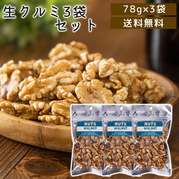 食塩不使用 生クルミ78g (3点セット)メール便送料無料 カリフォルニア産 くるみ ナッツ(ネコポス配送) (配送日時指定不可)