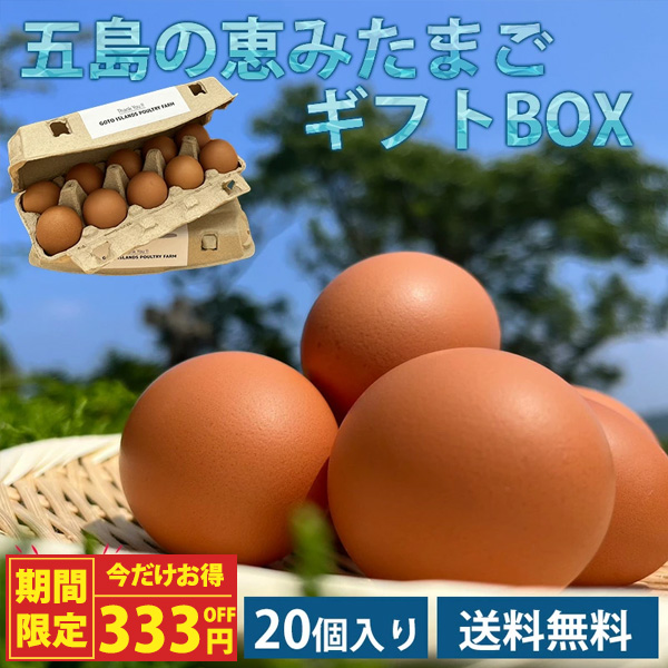 【お買い得SALE限定!333円OFF】五島の恵みたまご ギフトBOX(20個入) 送料無料 卵 大石養鶏場 (クール便配送) (配送日時指定不可) (北海道・沖縄発送不可)