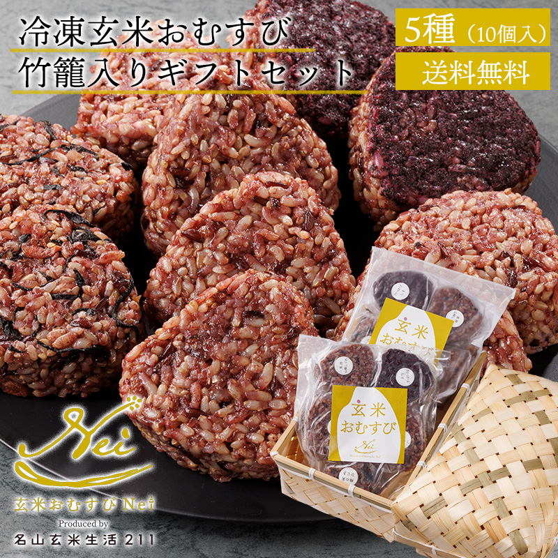 冷凍玄米おむすび 竹籠入りギフトセット 送料無料 宗屋 5種類 10個入り 竹かご入り お取り寄せ お歳暮 御歳暮 冬ギフト (北海道・沖縄別途送料)