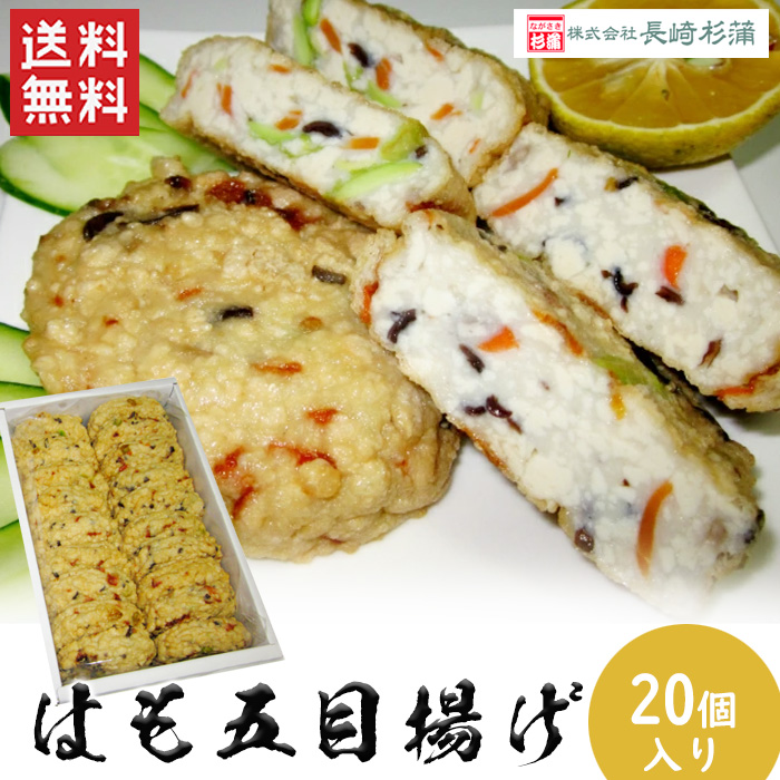 送料無料 はも五目揚げセット 20枚入り 練り物 練製品 はも 魚肉 五目揚げ 長崎 おやつ 夕食 酒 つまみ 長崎杉蒲 (北海道・沖縄別途送料)