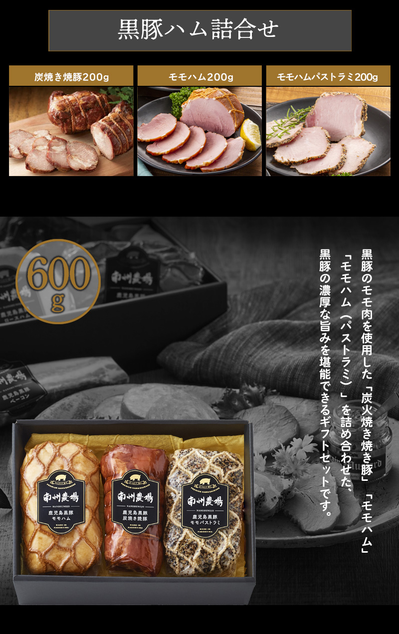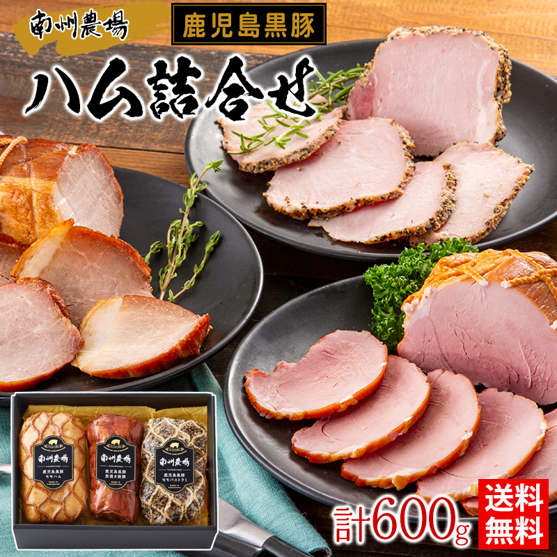 鹿児島黒豚 ハム詰合せ / 送料無料 炭焼き焼豚 モモハム モモハムパストラミ 南州農場 ギフト プレゼント お取り寄せグルメ(北海道・沖縄別途送料)