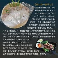 山陰地方名産の白いかの標準和名はケンサキイカです。地域によって「まいか」、「けんさき」、「やりいか」、「赤いか」などとも呼ばれます。あけぼの丸が漁獲した白いかを、浜の匠が水揚げ後ただちに薄塩味で独自の製法で丁寧に一夜干しにしました。