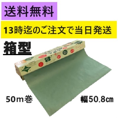 グリーンパーチ ロール 50m ボックスタイプ おさかなパックン 耐水紙 耐湿紙 緑の紙 魚の包装紙