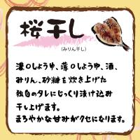 濃口しょうゆ、薄口しょうゆ、酒、みりん、砂糖を炊き上げた独自のタレにじっくり漬け込み干し上げます。