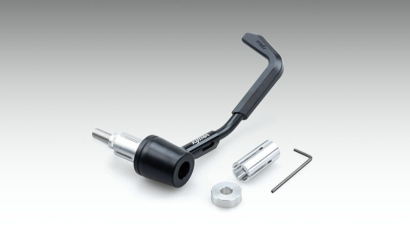 【適合】汎用 【商品説明】混走時などの接触で不意なブレーキを防ぐレバーガード ●従来品をブラッシュアップし、オリジナルデザインで再登場! ●【特徴】 ●・樹脂ガード部の鋭利な部分を見直しと軽量化も兼ね、コンパクトでスタイリッシュな形状に変更!KIJIMAロゴを配置。 ●・シャフト形状は曲げを追加しグリップエンドの干渉も回避し操作性の妨げを軽減。 ●・装着時に更にレーシーなスタイルを実現。 ●・先端部シャフトの脱落防止対策の溝加工をシャフトへ追加。 ●・転倒時の安全確保の為にアクセルロック防止スペーサーを付属。 ●※本製品は仮組状態で出荷させていただいております。お取り付け時には必ず各部の本締め作業を行ってください。また、走行前に緩みが無いかのご確認をお願いいたします。 ●【色】ブラック ●【サイズ】14/16/18mmに対応