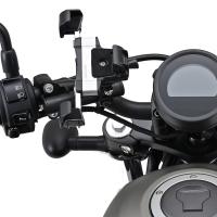 【適合】汎用 【商品説明】マスターシリンダークランプ部に装着できる汎用のマルチバーホルダー。 ●Rebel250/500などインチバー(外径φ25.4)を採用する国産車用です。 ●マットブラック ●パイプ径φ22.2/有効パイプ長75mm(パイプ全長=100mm) ●クランプピッチ33〜37mmに対応 ●マスターシリンダークランプボルトが2本留めの車両に取付可能 ●ブレーキマスター/クラッチマスター両側に取付可能 ●※下記車両には取り付けできません。 ●・クランプボルトが1個しかない車両 ●・ハンドルを切った際に本商品と燃料タンクとの間隔が少ない車両 ●・クランプピッチが33〜37mmを外れた社外品装着車両 ●・セパレートハンドル装着車でハンドル位置がTOPブリッジに接近している車両 ●※マルチバー専用電源ユニットの組み付けはできません。
