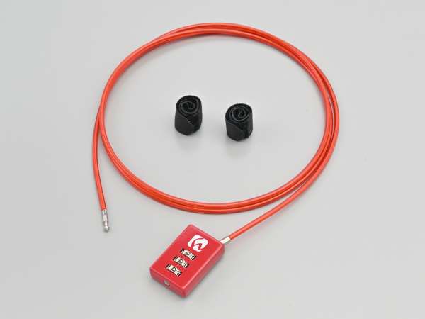 【適合】汎用 【商品説明】ヘルメットやバッグのイタズラ抑止に役立つダイヤルロック。ロック本体はヘッドが360度回転するので使いやすく、ダイヤルは「0〜9」の数字3桁で任意に設定可能。 ● ●・タイプ:ストレート ・カラー:レッド ・ワイヤー長:1300mm ●・南京錠対応ファスナー(リングタイプ)を採用したバッグに取り付けが可能です。 ●・カギが増えないダイヤル設定。 ●