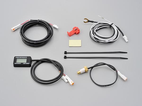 【適合】汎用 【商品説明】コンパクトなデジタル油温/水温計。 ●白色LEDバックライト付。 ●?9℃〜150℃まで測定可能。 ●5℃未満/121℃以上でバックライトが赤く点灯し、寒冷/高温状態を一目で確認できます。 ●イグニッションキーに連動して電源のオン/オフが可能 ● ●防水コネクター付属 ●【商品仕様】 ●寸法:横42mm×縦25mm×高さ10.8mm ●液晶:通常液晶 ●バックライト:白色/赤色(低温時、高音時に赤色表示) ●動作電圧:DC7.5V〜18V ●消費電流:最大50mA ●動作温度:?10〜+60度 ●防水性能:PX7相当 ●※一時的に一定水圧の条件に水没しても内部に浸入することがない水に対する保護等級。 ● ●構成内容 ●メーター本体×1 ●電源ハーネス×1  ●ジョイントハーネス×1 ●R1/8温度センサー×1 ●両面テープ×1 ●結線コネクタ×1 ●結束バンド×2 ● ●※油温計センサーフィッティングは別売りです。 ●※取付位置によっては太陽光の反射により視認性が悪くなります。 ●※長時間、炎天下に置かれた場合、熱によって液晶が黒くなる場合があります。