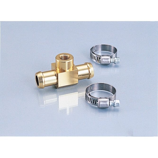 【適合】キタコ製デジタル温度計タイプ3対応 【商品説明】キタコ製デジタル温度計タイプ3、アナログ水温計(廃番)をラジエターホースに接続する際に必要なT型アタッチメントです。 ●ラジエターホース中継タイプですので、取り付ける車両のラジエターホースの内径に合わせてお選び下さい。 ●ネジサイズ:JIS規格R1/8テーパー ●アルミ削り出し ●ゴールドアルマイト仕上げ ●ホース内径Φ14用 ●【主な適合】 ●NS-1、NSR50、NS50F、MBX50等